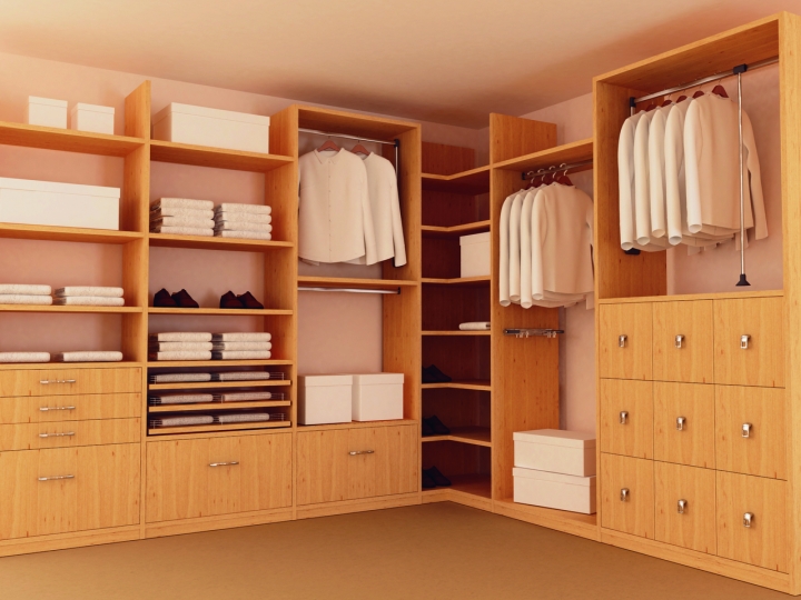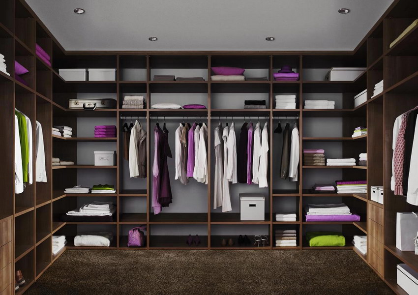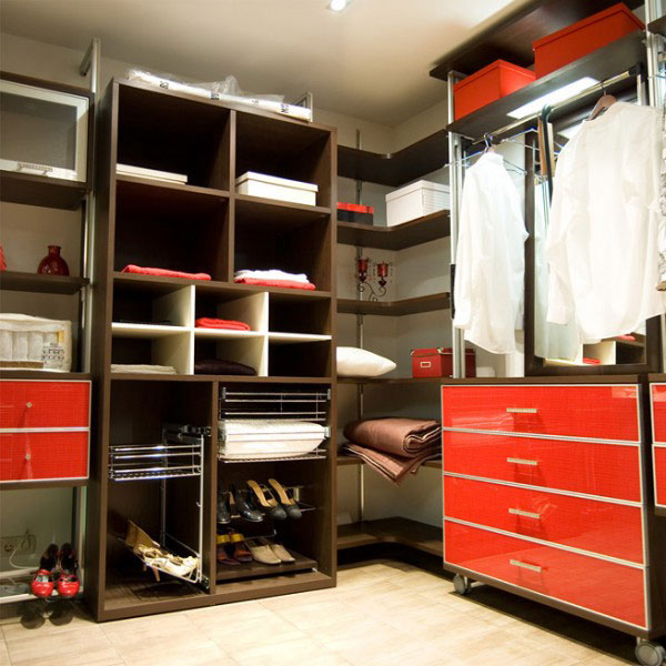 Как правило, в гардеробной располагается стеллажная система, ящики для мелких вещей и штанги для плечиков под верхнюю одежду, костюмы и платья. Если в доме есть дети, то отдельные части гардеробной можно сделать под рост ребенка, чтобы ему было удобно убирать и доставать свои вещи без посторонней помощи. Также есть возможность предусмотреть трансформацию конструкции в будущем, изготовив ее из модулей. Для максимального использования полезной площади стеллажи обычно изготавливают от пола до потолка. На самых верхних секциях вы можете хранить то, чем пользуетесь редко.