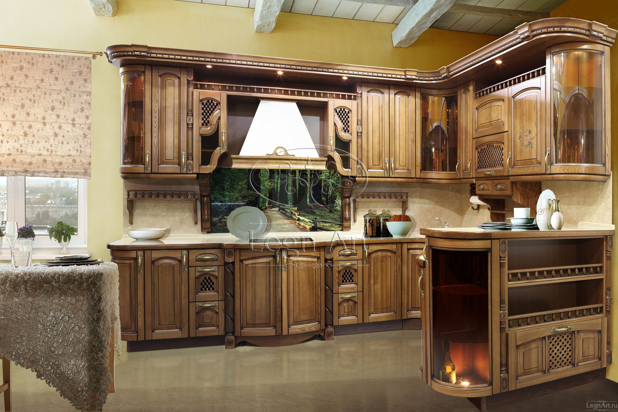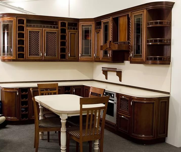 - кухня из массива выглядит респектабельно и сможет украсить самую великолепную кухню;