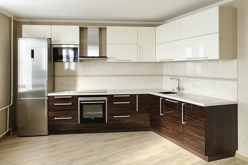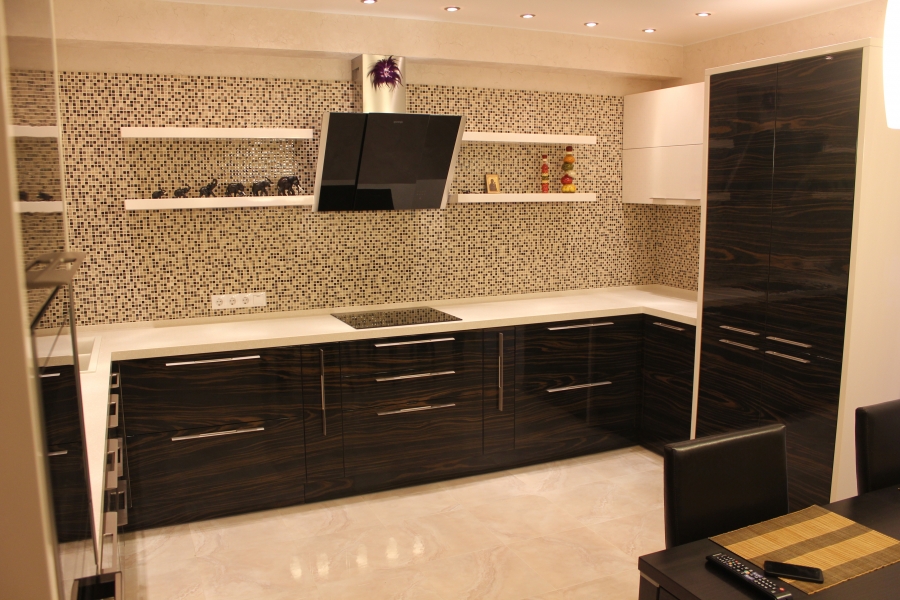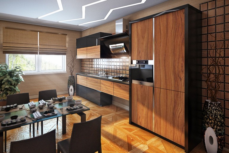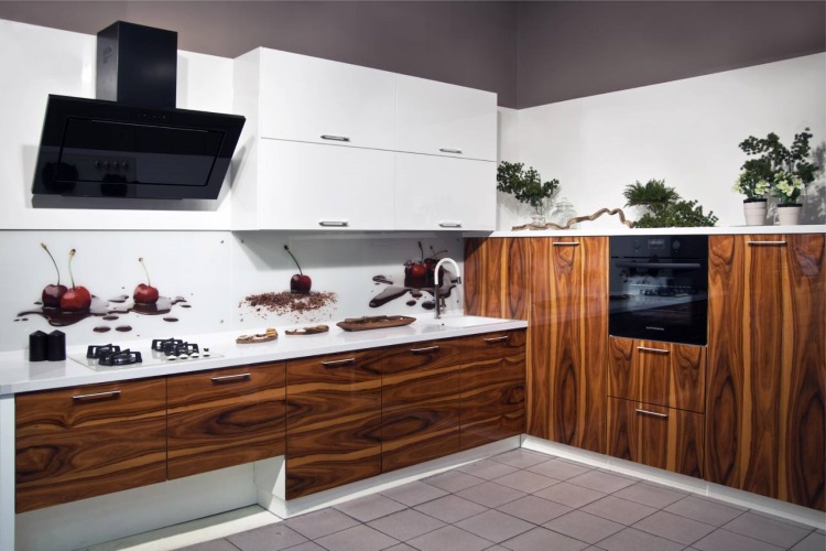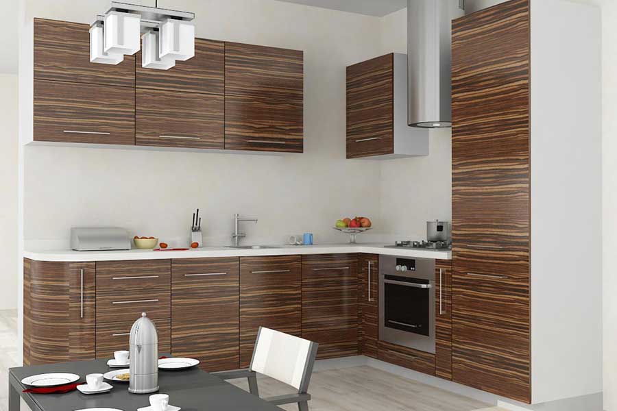 Кухни шпон можно устанавливать как в квартирах, так и в загородных домах. Это правильный выбор, если требуется получить изящный кухонный гарнитур и при этом сэкономить.
