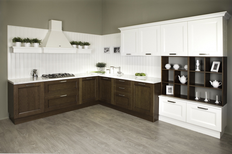 Интерес к кухням из натурального дерева не угасает, несмотря на то что мебель с отделкой из современных акриловых или пластиковых материалов пользуется большой популярностью. Только изделия из дерева могут наполнить дом теплом, создать уютную атмосферу. Натуральное дерево всегда смотрится элегантно и изысканно. Безусловно, цельный массив дерева является очень роскошным вариантом, который используются в производстве самых дорогостоящих гарнитуров. Отличной заменой ему является шпон. Кухни из шпона занимают промежуточное положение между кухнями из массива дерева и кухонными гарнитурами из различных плит и пластиков. Они грамотно сочетают в себе не самую высокую цену с красотой и эстетичность натурального материала. Натуральный шпон – это достойная и доступная по цене альтернатива древесному массиву.