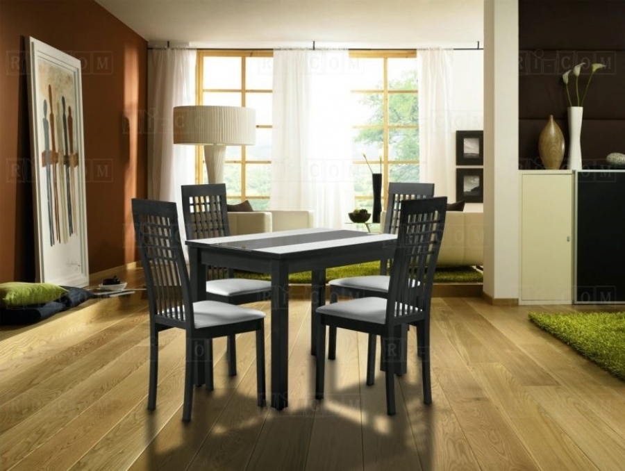 Столешница – пластик, со вставкой из стекла, царги – ЛДСП 22 мм. Вставка стола – высококачественный слоистый пластик. Есть возможность выбрать различные варианты ножек (деревянные, хромированные), цвета пластика, ЛДСП и стекла.