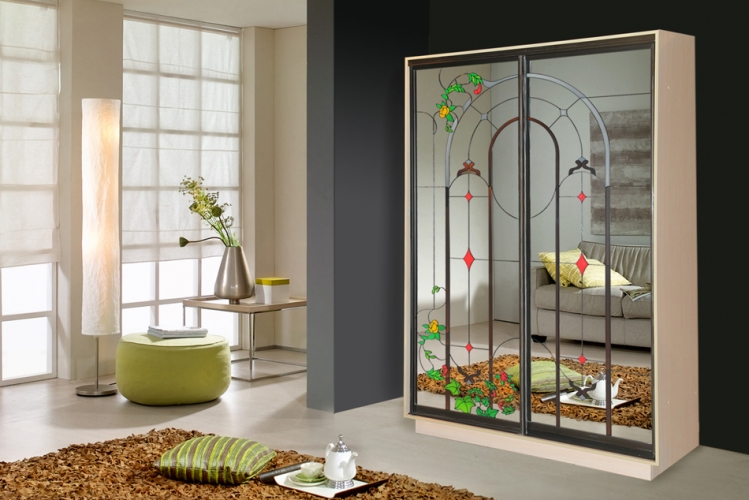 Шкафы-купе с витражным рисунком представляют собой настоящее произведение искусства, изысканное и грациозное, строгое и выверенное, активно использующееся в интерьерном дизайне.
