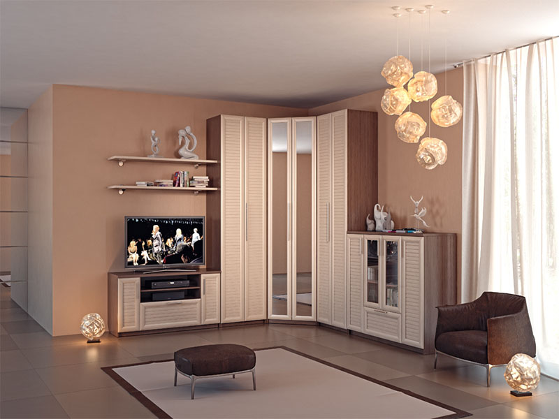 Поскольку гостиная комната является в доме самой большой и посещаемой, часто встает вопрос, как обустроить ее в соответствии со своими вкусами и предпочтениями. Тут на помощь приходят разнообразные шкафы, являющиеся частью той или иной модульной серии.
