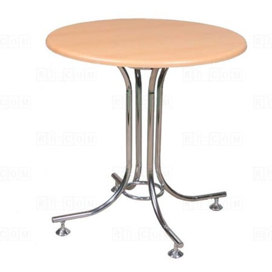 Стол «Салют» на хромированном каркасе. Столешница изготовлена из декоративного бумажно-слоистого пластика. Это облицовочный и конструкционный пластик высокого давления, иначе называемый HPL, с декоративной поверхностью пригодной для наружного и внутреннего применения, устойчивый к механическим повреждениям, свету, изменению погодных условий.